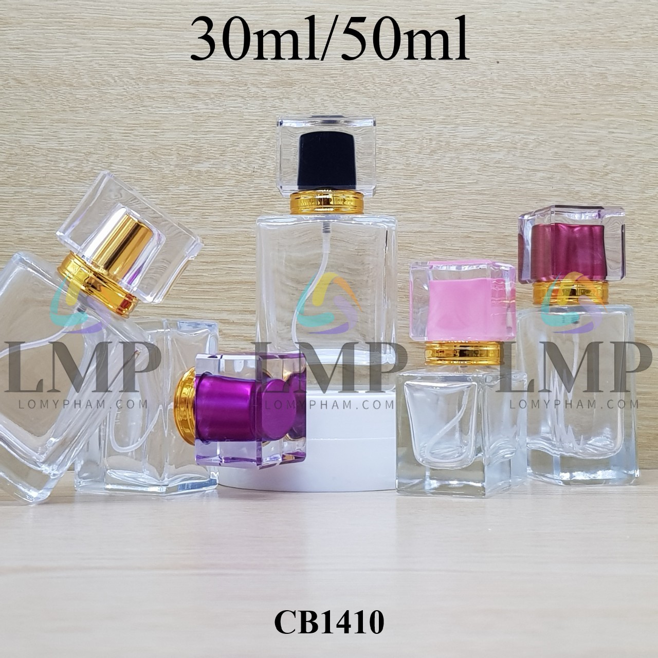 Chai nước hoa vuông nắp nhiều màu