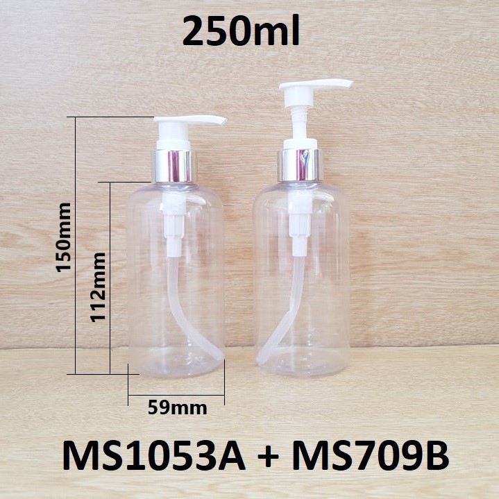 Chai PET vai tròn trong vòi van xi bạc bóng KO viền 250ml