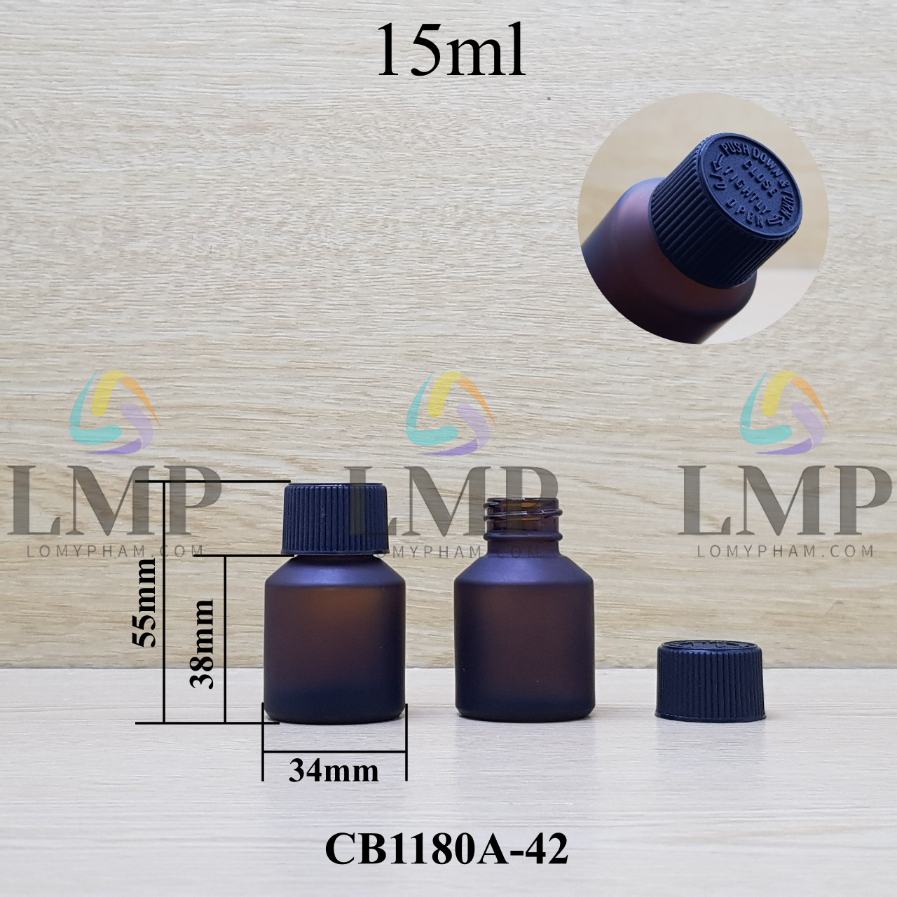 Chai thủy tinh vát nắp push down and turn sọc 15ml