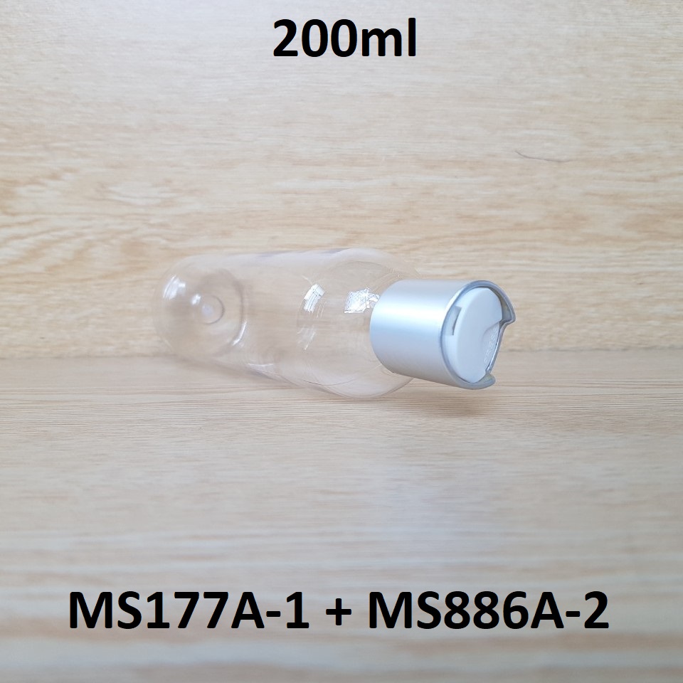 Chai trong vai tròn nắp nhấn trắng xi bạc 200ml